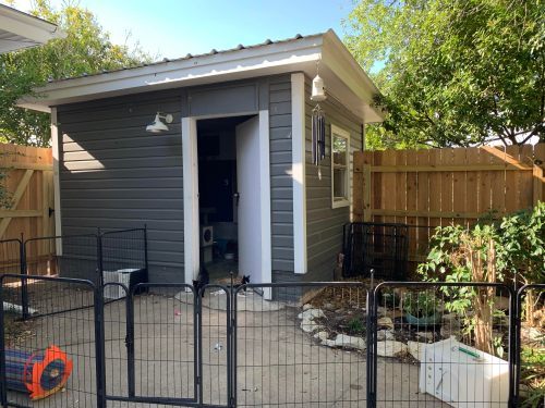 The Meowtel, where fosters stay when there is a large group. It’s air conditioned and has an enclosed outdoor area for rambunctious kittens