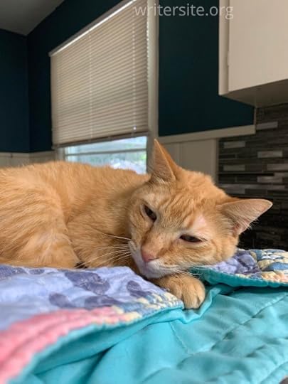 Bear, Jr. He’s one of the colony cats. He was found with a leg wound after being shot. It wasn’t safe for him to return to that neighborhood, so he was relocated to the colony here.Finally, there are the current fosters – twelve kittens, two mom cats, a teenager, and an old man. Ten of the kittens (the motorcycle gang of Harley, Davidson, Throttle, Silly, Sprocket, Spark, Tank, Piper, Speed, and Racer,) and the two moms (Mom Cat and Not Mom Cat) came from the drug house rescue. Wynken and Nod came in with their brother Blynken, who didn’t make it. But the two remaining storybook boys are doing great, and will be going to Pet Connect Rescue to be adopted out through Petsmart. The teenager, Sam, came in very sick with all kinds of nasty parasites, and now is waiting to find the right furrever family. Then there is the old man – Carrot – who came from a hoarding situation. He was bad allergies, and he seems to have a flare up every time I think he is ready to be posted for adoption. It’s hard enough to find the right home for an older cat – but it’s pretty much impossible when their back end is bald! In the meantime, he has him own special spot in the crew here, and he is living a great, although noisy, life.