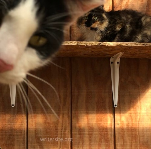 Last year, I was diagnosed with DCIS, a form of breast cancer, and I moved in with a friend to help take care of me. After a lot of treatment, I’ve just had my first annual post-op checkup, and things look fine. The cats have managed really well, doing what cats do best, and I’m planning on staying with my friend.