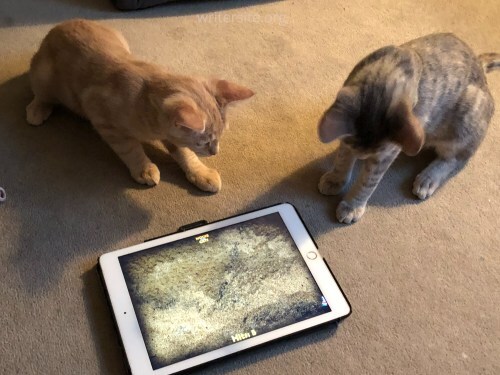 These girls loved the app “Mouse for Cats” on my ipad. Here’s a link to preorder my new book Rooted and Winged. https://www.finishinglinepress.com/product/rooted-and-winged-by-luanne-castle/