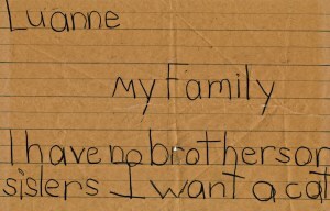 A big thank you to Editor Barbara Harris Leonhard at MasticadoresUSA for publishing my fun cat fantasy based on an assignment from first grade that I found (and Barbara published here–I will post below) and stimulated by a painting used as a prompt (but not enough to credit in the story) from a wonderful workshop by Lorette C. Luzajic and Meg Pokrass. The workshop was about guilty pleasures, and one of mine is cats!!!