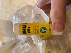 Sometimes I prepare the paper by collaging scrap paper and then covering it with white gesso. Sometimes I only use white gesso. And sometimes I don’t prep it at all. Notice in the photo I have the matte version of Mod Podge to use as glue. I am starting to think I only want to use glue sticks instead of Mod Podge. The torn edges stay down better. Here’s a photo of the glue stick that I prefer. Then after that are the photos of the initial collage bits.