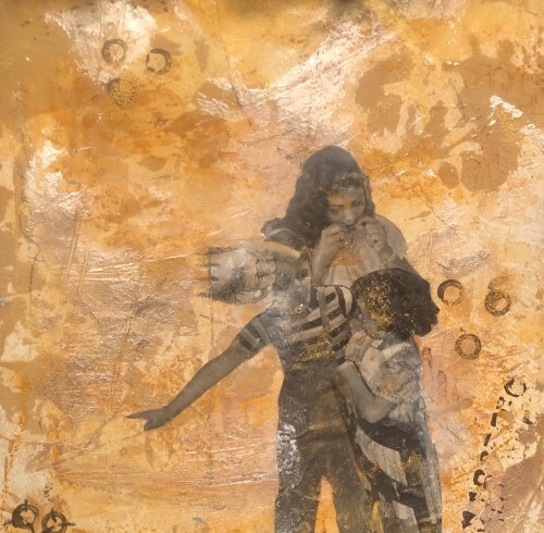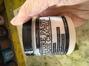 Occasionally, I like to build up texture using this Texture Paste. I used this on my piece “Found Sound,” which was nominated for a Best of the Net. You can find it on the link at the top of this post. In that collage I stuck to the off-white of the product, but Texture Paste can be painted over. Pastels will not work properly.