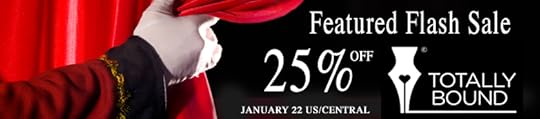 TODAY ONLY - January 22thThe entire Totally Bound Publishing catalog is 25% off!Books from authors such as Aliyah Burke, Amber Kell, Ashe Barker, Bailey Bradford, Carol Lynne, Morticia Knight, NR Walker, Sean Michael, Sierra Cartwright, T.A. Chase, Talia Carmichael, MK Schiller, Katy Swann, Lily Harlem, Elizabeth Coldwell and so many more.