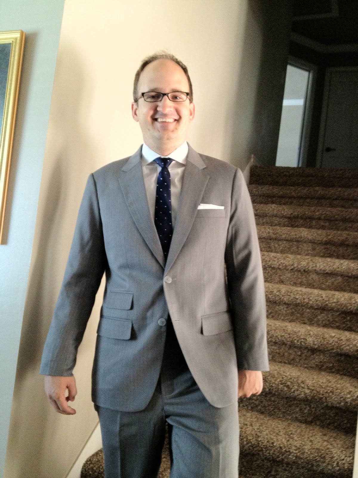 I wrote previously of my fitting by DressCode, my new "suit guys", that made me a custom-tailored suit and put me in tip-top fashion amongst my colleagues. They came to my house (they'll also come to your office), measured me, and within a couple weeks I was wearing a top-quality suit that in traditional tailors would cost me $1,000 or more. Because they outsource the tailoring and have streamlined the process to focus on in-person service and fashion, a typical suit like mine goes for around $300. My last post covered the fitting. I wanted to do a follow-up post about how much I like my suit from them.