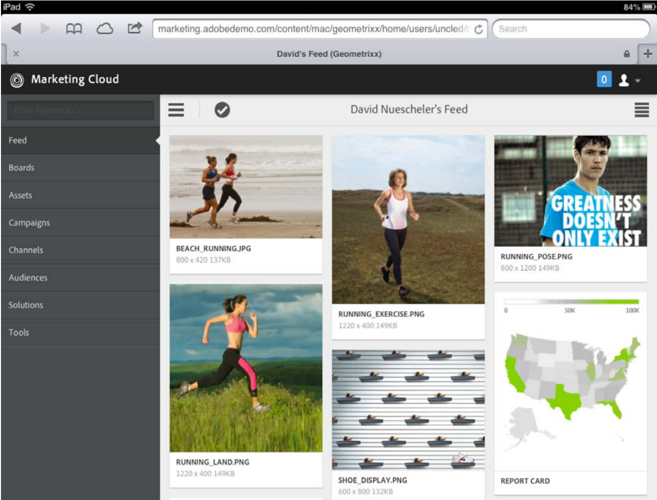 Creative professionals can create designs right inside the Adobe creative products like Photoshop, and have their designs shared right to Marketing Cloud for the marketing organization to review, provide feedback, and send back to the creative employees for revision. Both creatives and marketers in the organization can all review new data in a Pinterest-like "feed" within Adobe Marketing Cloud, comment, make annotations, and collaborate around everything shared on the platform.