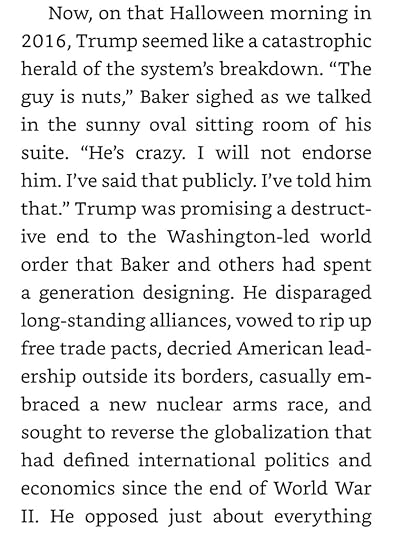 As this book begins, Baker is considering Trump: