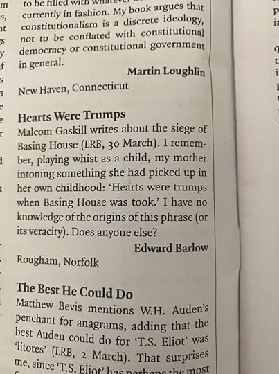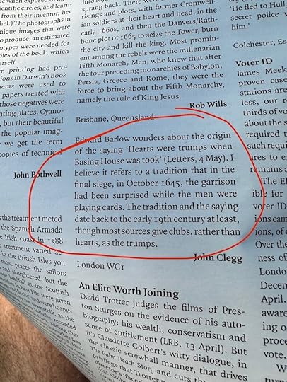 from Malcolm Gaskill’s 3164 word review of The Siege of Loyalty House: A Civil War Story by Jessie Childs in the 30 March 2023 LRB: