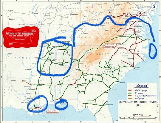 That would be more or less the furthest the Confederacy got in the Mississippi Valley. Some weeks after the battle, the Confederate army abandoned Corinth, Mississippi. Corinth was key: it was the crossroads where the railroad from Memphis to Charleston intersected the railroad that ran from the Ohio river to the Gulf port at Mobile, Alabama.