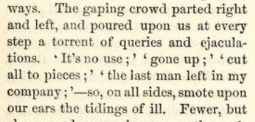 Along the sheltered strip of beach between the river bank and the water was a confused mass of humanity—several thousands of men. They were mostly unarmed; many were wounded; some dead. All the camp-following tribes were there; all the cowards; a few officers. Not one of them knew where his regiment was, nor if he had a regiment. Many had not. These men were defeated, beaten, cowed. They were deaf to duty and dead to shame. A more demented crew never drifted to the rear of broken battalions.