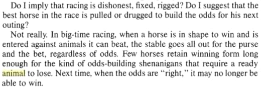 Horse handicapping is more art than science. I’ve found Brad Free’s book to be the most readable and clear-eyed. Steven Crist (whose own memoir Betting On Myself is fantastic) recommends Davidowitz, which is indeed full of insight. My copy of James Quinn’s Complete Handicapper is thoroughly marked up. Tom Ainslie writes with a style that makes the whole game seem amusing, for example his choice use of the word “animal”: