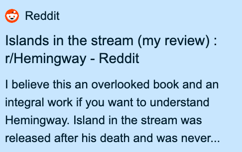 The song Islands in the Stream was written by The Bee-Gees. They had it in mind for Diana Ross. Barry Gibb says that in this interview. Many places, including Wikipedia, say the title of the song came from the Hemingway novel published thirteen years previous. I can find no firsthand source where Barry Gibb states that or makes that connection. But the phrase “islands in the stream” doesn’t seem to have existed before Hemingway’s book was published. Some sources link it to the John Donne poem from which EH got another title: “for whom the bell tolls.”