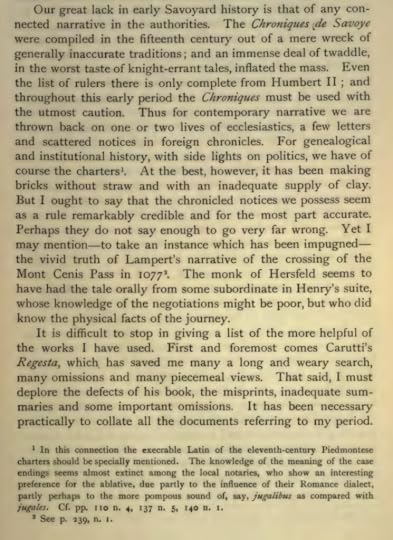 He does seem to have put in the work. You can read his Early History of the House of Savoy online if you so choose.