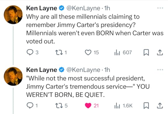 Maybe I will stake out the take that Carter was a great president and a mixed bag as an ex-president. Could be fun!