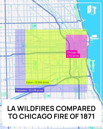 This is a faulty comparison as almost all of both the Palisades and Eaton fires are happening in national forest/recreation area or other wildlands, not built up areas.