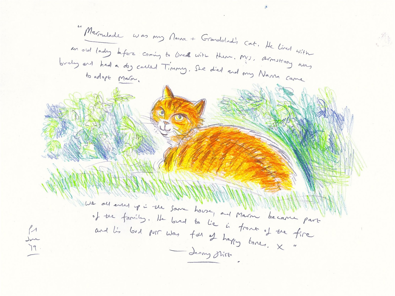 I've started a series of drawings of people's cats and dogs. I'd like them to have the nostalgic glow of an old, favourite children's book. Thanks to those friends who've helped by contributing photos and telling me their stories.