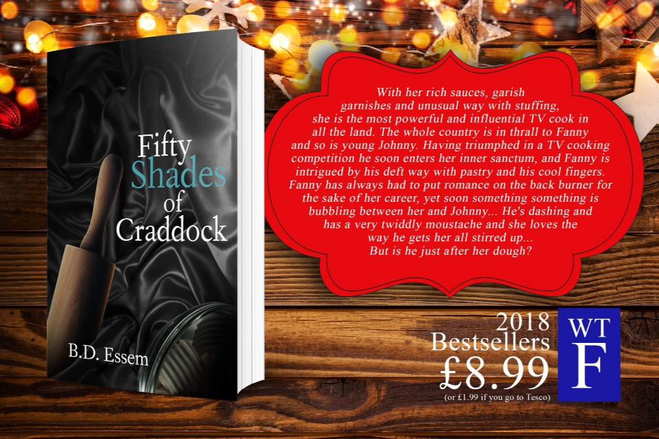 Fifty Shades of Craddock by B. D Essem With her rich sauces, garish garnishes and unusual way with stuffing, she is the most powerful and influential TV cook in all the land. The whole country is in thrall to Fanny and so is young Johnny. Having triumphed in a TV cooking competition he soon enters her inner sanctum, and Fanny is intrigued by his deft way with pastry and his cool fingers. Fanny has always had to put romance on the back burner for the sake of her career, yet soon something something is bubbling between her and Johnny... He's dashing and has a very twiddly moustache and she loves the way he gets her all stirred up... But is he just after her dough?