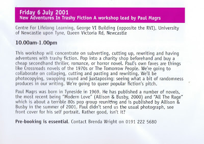 Treasure from the archive. Back in 2001 I was guest of honour with Stella Duffy at the Proudwords Festival in Newcastle, which was organised by Julia Darling. I don't get asked to do *half enough* things as lovely as this...! It was a really fantastic do. Happy times.