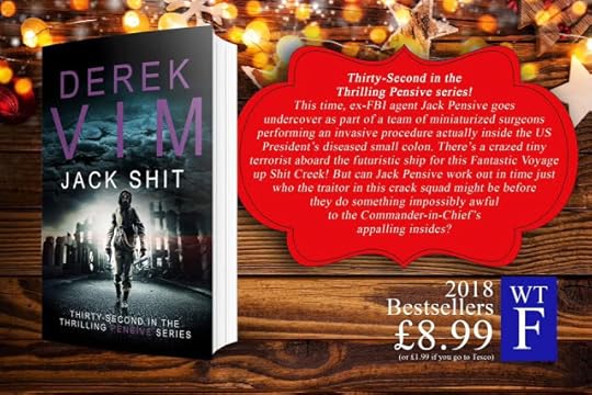 JACK SHIT by Derek VimThirty-Second in the Thrilling Pensive series! This time, ex-FBI agent Jack Pensive goes undercover as part of a team of miniaturized surgeons performing an invasive procedure actually inside the US President’s diseased small colon. There’s a crazed tiny terrorist aboard the futuristic ship for this Fantastic Voyage up Shit Creek! But can Jack Pensive work out in time just who the traitor in this crack squad might be before they do something impossibly awful to the Commander-in-Chief’s appalling insides?