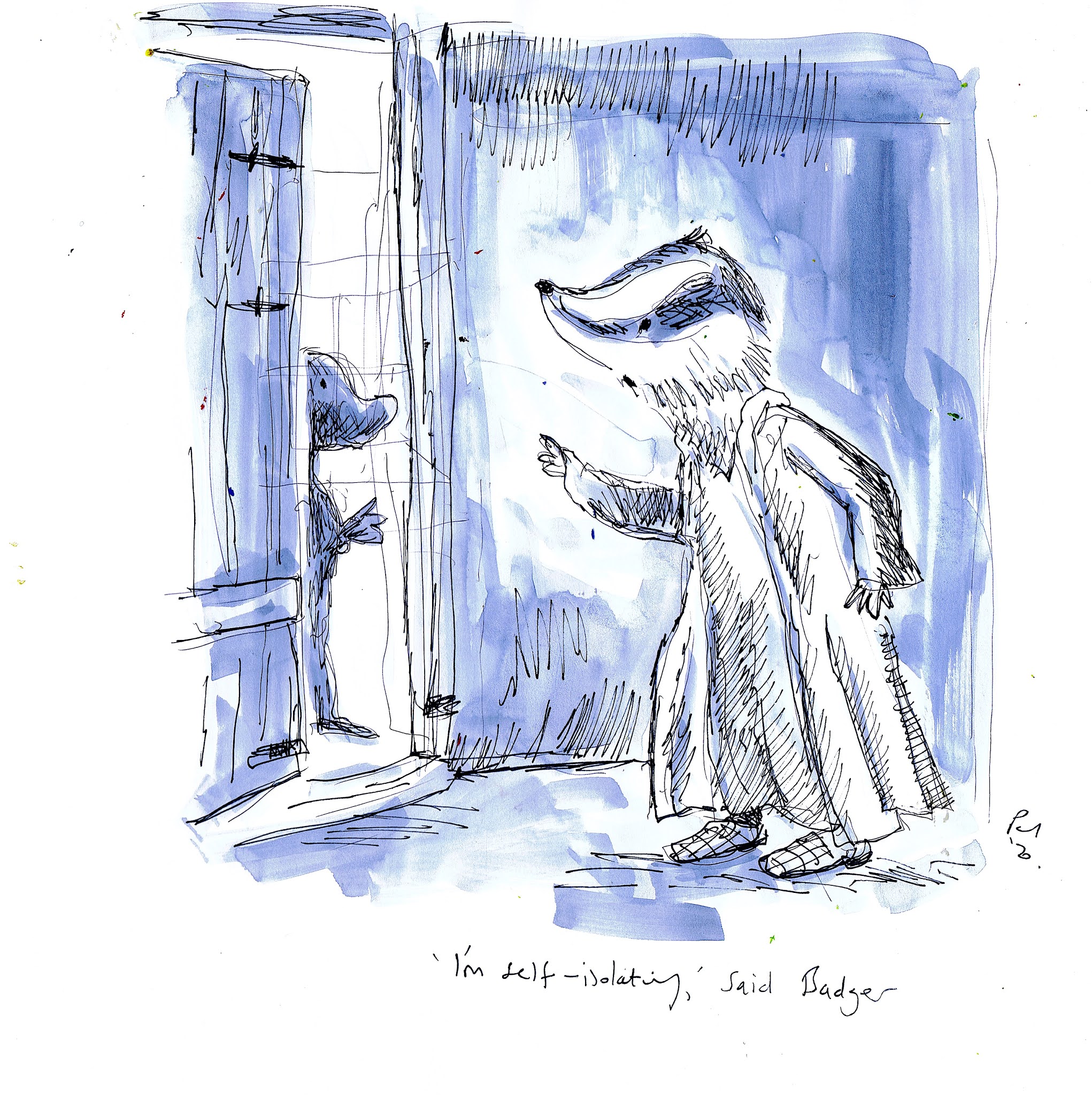 Badger is shielding, deep in his burrow, deep in the Wild Wood. We take a chance and carry a basket of supplies to his door. We knock for ages and eventually he glares beadily through the letterbox. ‘Very kind of you, I’m sure,’ he growls. ‘Coming all this way.’ ‘There’s some plum cake, and some eggs, and some dried pasta. And forty-eight toilet rolls.’ ‘Just pop the basket in front of the door and leave it there,’ he says. ‘I’ll fetch it in when you’ve gone.’ ‘How are you coping on your own, old fellow?’ Ratty asks him. ‘Are you bearing up?’ Badger seems to consider the matter. ‘Well, my life’s hardly any different. It’s just got fewer foolish animals in it. And at least I never have to see that awful Toad.’