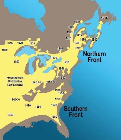 Up until the 1800s, coyotes lived mostly in the southwestern United States, and in low numbers in the Midwest. To the east and north, wolves shut them out of their forests. But when farmers and trappers exteriminated wolves in much of North America, the coyotes began to expand their range. By the 1970s, they had reached the far corners of New England. In the winter of 1985, there were reports in Newfoundland of wolf-like animals traveling across the ice to the Port au Port Peninusula. In 1987, a car hit one of the animals, and it was confirmed to be a coyote pup. The coyotes had come about as far east as they possibly could.