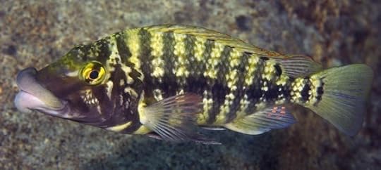A thick-lipped cichlid from Lake Tanganyika in Africa. Photo by Ad Konings