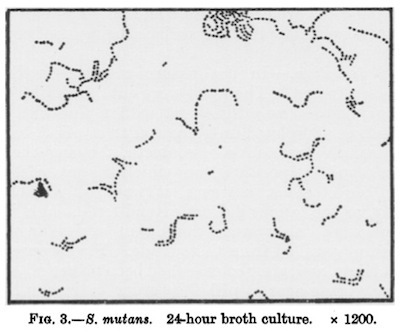 A drawing by J. Kilian Clarke's 1924 paper on the discovery of S. mutans as the cause of cavities