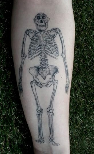 Please find attached a photo of my Australopithecus tattoo. I’m a medical anthropologist researching the historical relationship between school meals and obesity in children as part of my PhD at Durham University. Obviously this has very little to do with Australopithecus but my interest in “Lucy” began when I started my UG degree in Anthropology here at Durham. One of my first lectures was on our Biological and Social Origins and we learnt about our evolutionary heritage. Lucy caught my eye because she was one of the most complete finds of this species at that time. Also as it was thought that she was more closely related to Homo genus than any other Australopithecus at that time.