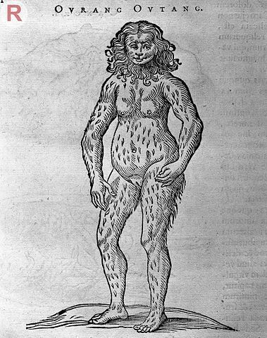 In 1838, orangutans were still frighteningly unfamiliar to Europeans. In fact, all the great apes were a mystery because they lived thousands of miles away, deep inside African and Asian jungles. Early European explorers would report encounters with fierce, human-like creatures, usually told second-hand. In the early 1600s, a Dutch physician named Jacobus Bontius who lived on the island of Java wrote of wild apes there called “Ourang Outang,” meaning “man of the forest.” The picture that accompanied his description looks like a woman with a lion’s mane.