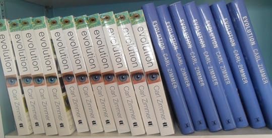 This shelf is for you: American paperback edition of Evolution, and UK hardback edition