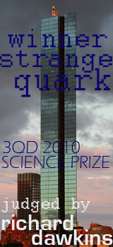 Congratulations to my colleague across the sea, Ed Yong, for scoring first place in 3 Quark Daily's science prize. Yours truly snagged second place for my post on the Neanderthal genome. And a toast of the morning coffee to Margaret Morgan for her post on the evolution of chloroplasts.