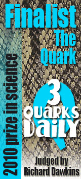I've moved on to the final round for the 2010 prize in science from 3 Quarks Daily. Now it's in the hands of Richard Dawkins. Congratulations to everyone who has made it this far (including my fellow Discover bloggers Sean Carroll and Ed Yong). Stay tuned for the decision on June 21.