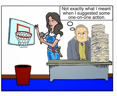 6. Mick and the other sales staff place bets on how many times the jargon-spewing Communications Manager will babble "the nexus" in her weekly seminar. After the seminar, controversy breaks out over whether her use of nexus as a verb counted, and what the hell nexus means anyway.