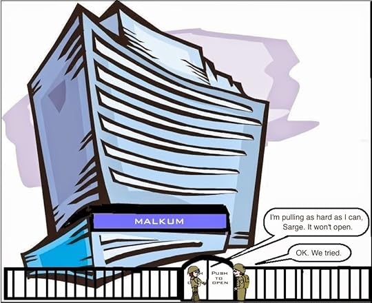 Malkum 1: Yes, the idiots . . . The idiots can be so annoying.] he must overcome his self-doubt, escape the crosshairs of the enemy, and convince an unwilling army [If he's counting on the Iraqi army, he's in trouble.] to follow him to the enemy’s gate. [Is only thing protecting this former think tank from the rebellion army a gate? Lucky for them the rebel army are all idiots.]