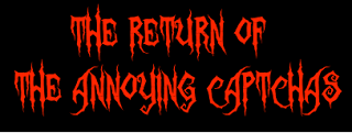 Captcha (short for Captain Chaos) is a test you must perform in order to convince a computer that you are not a computer. For instance, say it's yesterday and you wish to comment on one of Evil Editor's blog posts. You type out a lengthy comment which is sure to entertain and enlighten the Evil Minions. In order to publish the comment, you must, of course, get it past Evil Editor’s Evil Eye™, but first you must pass the captcha test, in which a series of letters are displayed, and you must type them. Failure to correctly reproduce the series of letters is evidence that you aren't a human, and we don't want you here.