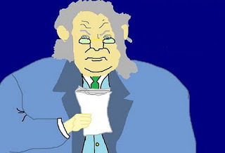 "Ah, your wisdom has not diminished with age," I told him. I opened the door, and for a moment thought I was looking into a mirror, until I realized the man standing there was slightly less attractive than myself. "What's the idea?" I asked. "Where'd you get the Evil Editor mask?"