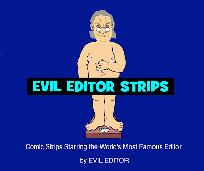 Getting to my project, which Evil Jr. and some of his friends set up for me because they decided I needed it because they enjoyed the EE comic strips I posted last June/July, it's a book collecting 160 comic strips. Some of them appeared on this blog, and the rest were created for this book. I call it Evil editor Strips. Here's the cover: