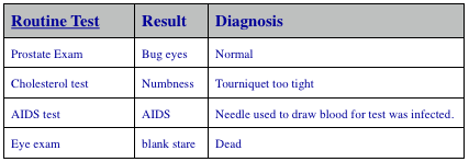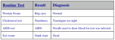 Robin S. said...I liked the prostate test bit, with the bug eyes.