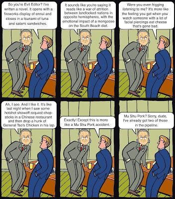 Generalizing, which is hard to avoid in a synopsis, is the enemy of humor. I can see that I need to do a better job of sorting out which details to include to convey the humor of the book. That, or just steal Phoenix's query. :)