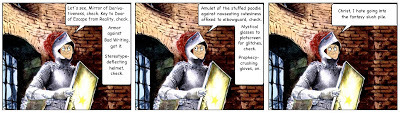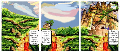 2. There be a damsel in distress hoping for rescue from the scary forest. Also, there be an evil elf disguised as a prince. Plus, there be a witch's cottage sitting empty, for the witch be gone to London on a quest for newt-eyes. But the handsome knight be not there, for he be stuck in the Adriatic with a boatload of drunken sailors.