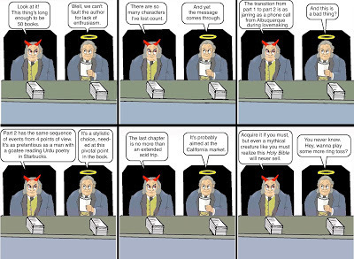 benwah said...For the first few sentences of the query I thought you had a pretty good Elmore Leonard thing going on ("Pagan Babies" anyone?) and I liked it. But then the sudden appearance of ghosts and -- wait, what? -- the fate of the universe is at stake? As EE says, that threw me.