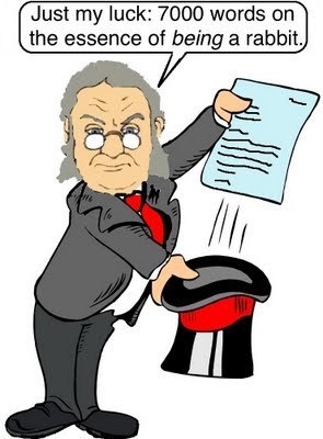 EE looks up, alert like corn at the sound of a locust. He belatedly notices the cab driver's spectacles, and the calluses on his thumbs from hitting the space bar repeatedly. EE's joke that a writer would be desperate enough to pose as a cab driver and kidnap him in order to worm his way into a contract has become reality! He lunges for the door. The locks slam up. He tugs at the handle, but it doesn't move. EE relaxes back into...
