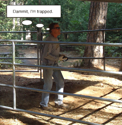 Then PJ is abducted by carnivorous cliff guards, [What would happen if no one was guarding the cliff?] [Are carnivorous cliff guards better at guarding cliffs than vegetarian cliff guards?] where she [and] meets hot, quiet Reid in a corral of captives. They escape with Trey’s help [I never thought of a corral as a place a human would need help escaping from.]