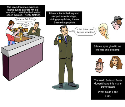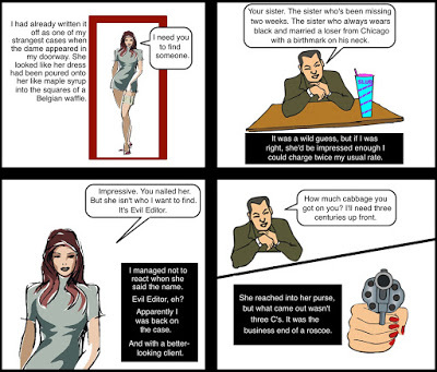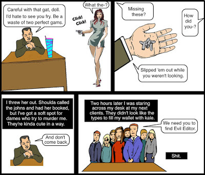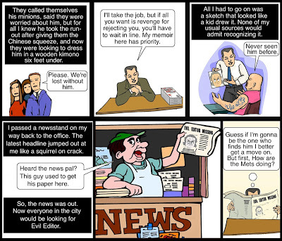 Excerpted from Evil Editor Strips Again.Inspired by writing exercises that used to be on this blog.Click on panels to enlarge.