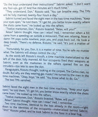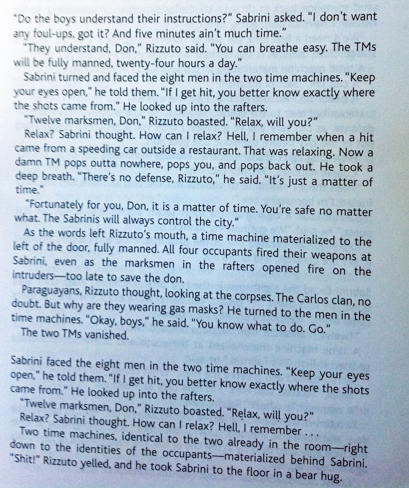 “Aliens?" Benkelstein said. "Yes, of course. That’s one possibility, an intergalactic fleet of war birds. Scientists knew they were coming and built this time warp so a few of us could escape to the future before the aliens wiped out humanity. And now ground forces are no doubt driving around, looking for any survivors.”