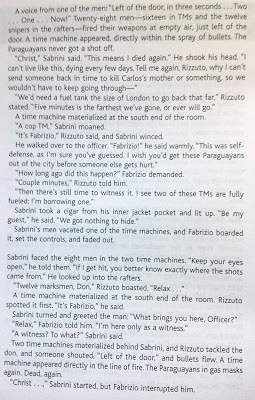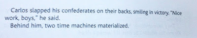 “By the way, even if we have gone forward in time, and this is the year 3180, it’s the future only to us. To everyone who's already living here, it’s the present. So your road sign should have read, ‘840, Present.’ Case closed. Now may I go back to reading my--”