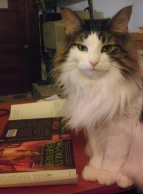 , has an equally splendid assistant, who today sent me the dust jacket for The Goblin Emperor.Fig. 1: My lovely assistant Catzilla* will show it to you: