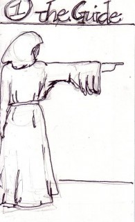 My scanner has had its Helen-Keller-at-the-pump moment, and can communicate with Annie Sullivan (a.k.a. Genghis the Laptop). Ergo, as promised, the card I drew of the first trump of the Sibylline: The Guide.