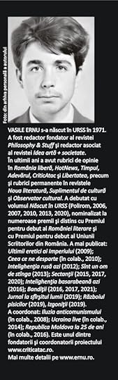 ‘Generația mea, născută în anii ’60-’70, nu doar că nu a iubit comunismul, dar nici macar nu l-a urît. Și aceste e lucrul cel mai grav, poate. Ea pur și simplu l-a disprețuit total. Și, fapt mai grav, l-a ignorat profund, iar ignoranța omoară orice regim. Cînd față de regim te comporți că și cum n-ar exista, el moare pur și simplu. Aceasta este marea lecție! Aceasta este lecția dată de generația mea. Ea l-a distrus printr-un soi de ignoranță profundă. Generația mea era interesată doar de lucruri pe care regimul nu ni le punea la îndemînă. Și noi ne-am retras în apartamente, beciuri, garaje, tabere, parcuri, să ne delectăm cu micile noastre plăceri. Iar plăcerile noastre se reduceau la lucruri banale: o pereche de blugi, un vinil cu Beatles și o carte cu vederi liberale, precum Bulgakov sau Brodski. Dacă prindeam și o sticlă de Cola, eram deja în transă, și o amestecam cu un Cabernet moldovenesc ieftin.’ (pag. 312-313)