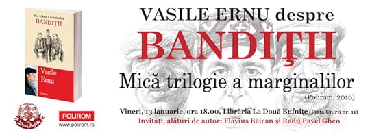 Vineri 13 ianuarie / Ora 18.00 / Vasile Ernu despre Bandiții, mică trilogie a marginalilor / La Două Bufniţe / Piaţa Unirii nr. 11 (intrare de pe Matei Corvin) / Invitaţi: Flavius Băican & Radu Pavel Gheo / (facebook event)